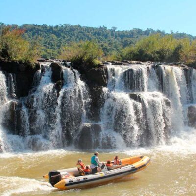 Partida desde Iguazú hacia El Soberbio a las 7:00 hs a.m. desde hoteles.  Arribo al embarque Puerto Paraíso. Navegación de dos horas de duración en gomones semirrígidos para avistaje de los Saltos. Retorno a Puerto Paraíso y posterior retorno a Iguazú a última hora de la tarde.